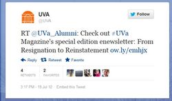 The University of Virginia acknowledged the transformative role played by social media in the wake of the controversial firing and re-appointment of President Teresa Sullivan earlier this year. In a special e-newsletter