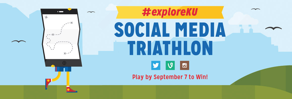 This year, the Social Media Triathlon will retain many of the same elements as last year’s event, with a few changes and updates. Notably, Foursquare will be replaced by Vine and Instagram’s social video-sharing apps. We’re still giving away prizes—nearly identical to last year’s lineup—and have also created giveaways for items like shirts and buttons displaying the hashtag #exploreKU. The goal is to encourage new students to connect with campus and one another by sharing content and to use the hashtag for longer than the two-week campaign run. We’re also making a greater effort to engage with students and the content they provide.