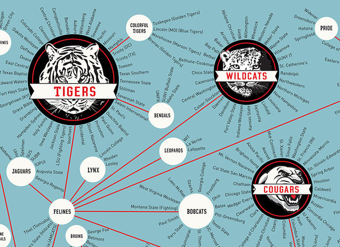 Yale helpfully showed us how much sugar is in popular beverages and gave us the low down on the Diamond Planet. But the award for the coolest college infographic might go to Pop Chart Lab, which recorded every mascot for collegiate sporting teams (that’s more than 1100 wolverines, Spartans and eagles).