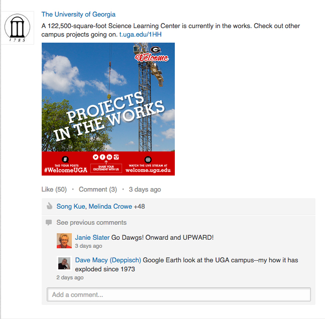 At the University of Georgia, we experimented with our first digital welcome campaign complete with brand messaging, stories, lists, videos, GIFs and aggregated social content.