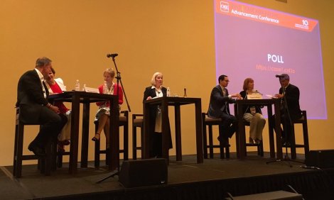 Arguing against the proposition were Bernard Toh, director of the alumni relations office at National University of Singapore; Teresa Flannery, vice president of communications at American University in Washington, D.C.; and Philip Sohmen, co-founder and deputy chairman of China’s YK Pao School. CASE President and CEO Sue Cunningham moderated the debate.