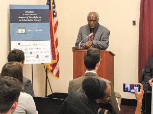 The impetus for the briefing was the recent release of Tax Policy and Charitable Giving, a study commissioned by Independent Sector and conducted by the Lilly Family School of Philanthropy at Indiana University. The study found that current tax reform proposals would significantly decrease charitable giving “by as much as $13.1 billion.” The study also indicated that expanding the charitable deduction increases charitable giving and that tax incentives affect giving to religious organizations as well as other charities.
